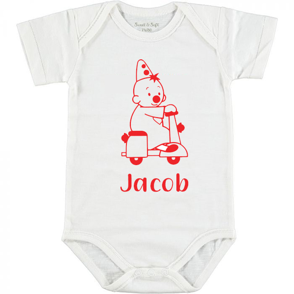 Romper met naam en Bumba, mouwloos of met korte mouwen. Leuk om als kraamcadeau te geven!